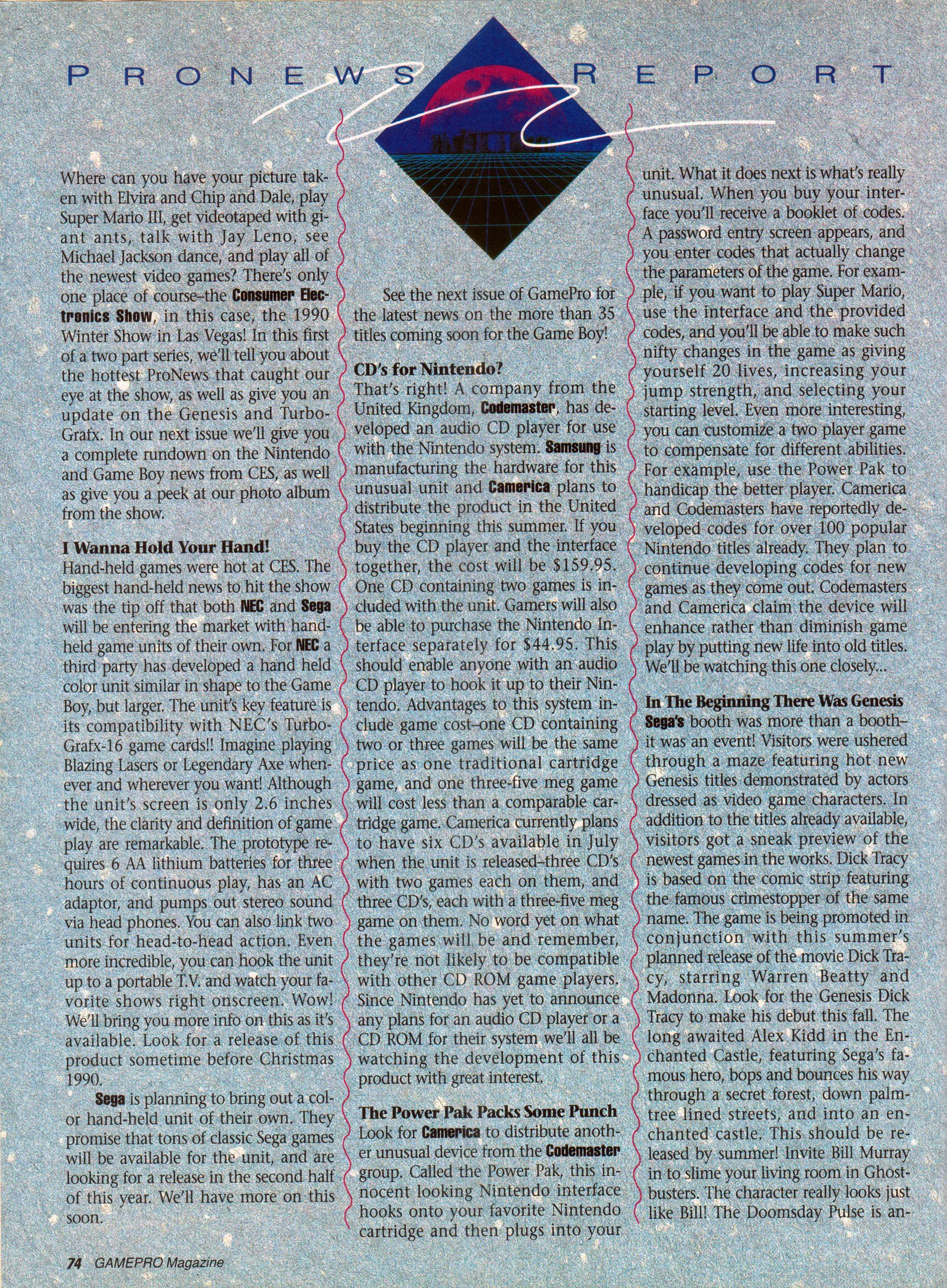 Source: Game Pro, March 1990 Credit to Frank Cifaldi of Lost Levels for spotting the old GamePro article.