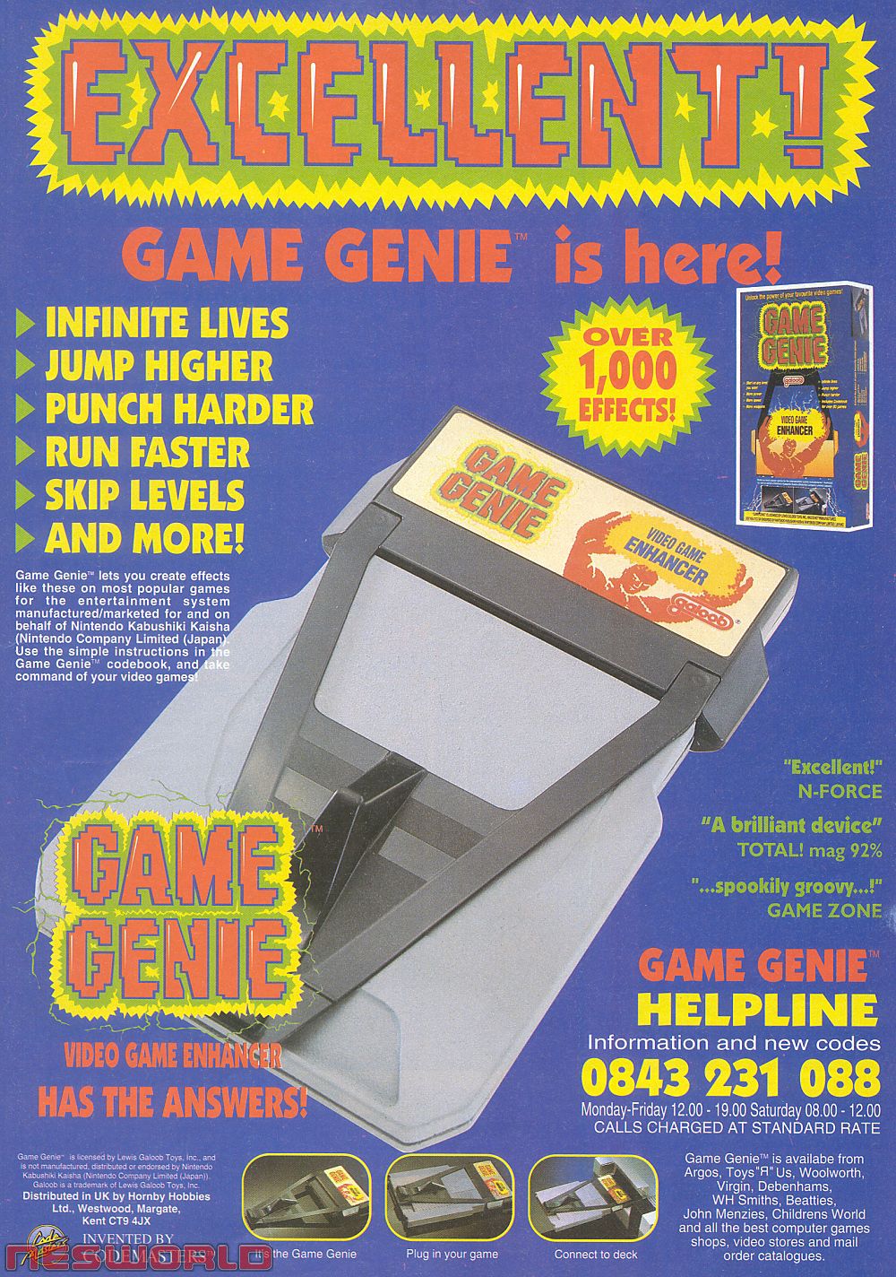 distributor of Nintendo products and the Game Genie products then dissapeared from store shelves. In the UK toy giant Hornby handled the distribution of the