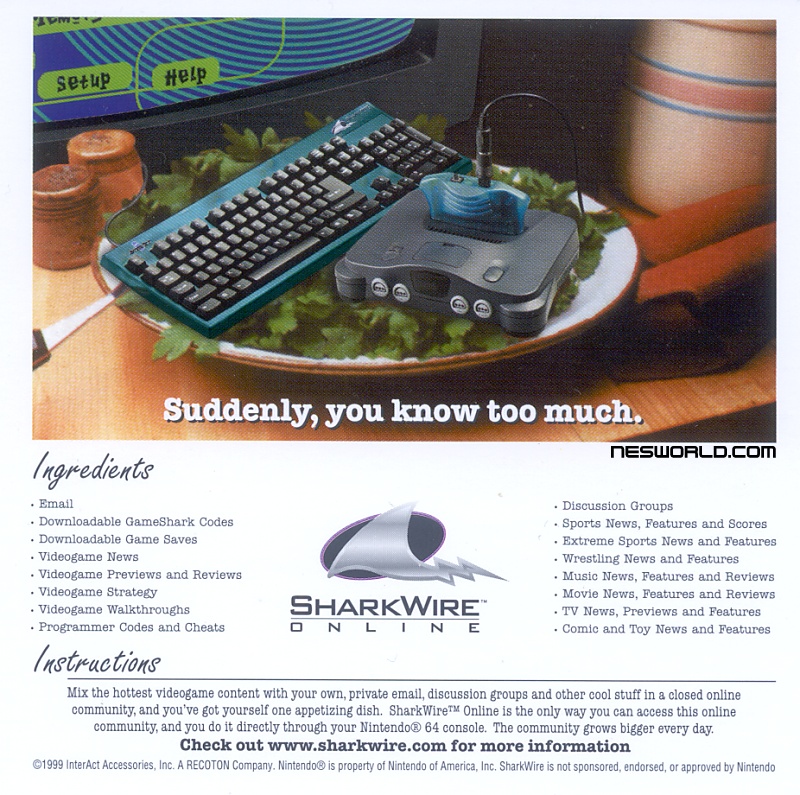 was also the only Nintendo64 accessory outside Japan to offer an online service. A Press Release from E3 can be read here.