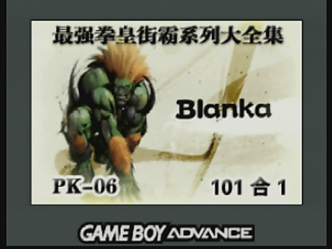 Well when powered up, a titlescreen appears - showing a picture of Blanka from the Street Fighter series. As I'm unable to read any asian writing, I have no clue of what the text says, other than this cart must be "volume 6".