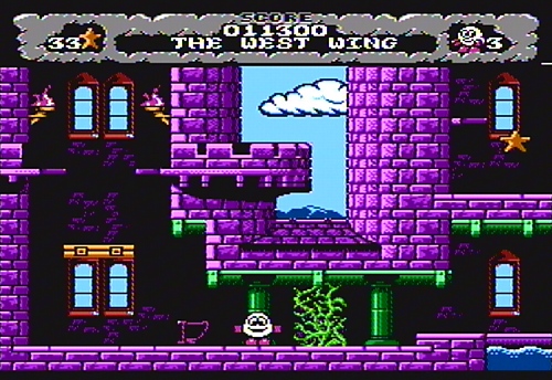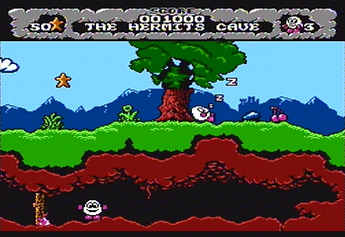 One thing that annoys me about this game is that while Dizzy is quite easy to control most of the time, he tends to (egg)roll a lot after a jump and if you're not careful you'll end up falling into a pond or something and loose a life. But other than that the game is quite easy and with a little bit of caution the game actually can be completed with just one life.