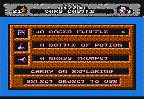 Your quest is now, as Dizzy, to rescue Daizy from the evil wizard and to do that you have to solve a few puzzles first, or rather picking up a lot of tings along