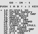 We are dealing with one of the most basic menus here, Up and Down of course works, B let's you switch page, of which there are 6 with 13 entries on each except for the last one. Finally the A button launches the game selected.