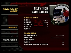 When choosing a driver a lot of interesting stuff happens. A lot of the driver details are incorrect, the Ferarri logo was slightly changed in the final. A cameraman is supposedly an