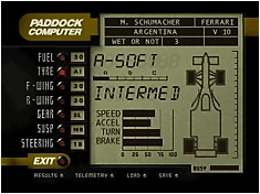 Before entering a race you're presented with the set-up "computer" shown above. As it shows there are a few differences, like there's no such thing as a soft intermediate in the final