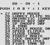 We are dealing with one of the most basic menus here, Up and Down of course works, B let's you switch page, of which there are 6 with 13 entries on each except for the last one. Finally the A button launches the game selected.