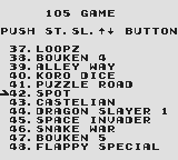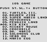 The games included on this cartridge is a whopping 50 unique titles, while it doesn't deliver on its promised of 105, I would say that 50 is pretty good. While the biggest game on the cart probably is Turtles III and Adventure Island 2 (Bouken Jima 2) being a close second, I honestly never played those much. Of course Super Mario Land had my attention, but games like Yoshi's Egg, Bubble Ghost, Tetris, Penguin Land, Tail 'Gator and World Bowling caught my attention, and then were were some (a lot of) weird Japanese games that I never understood.